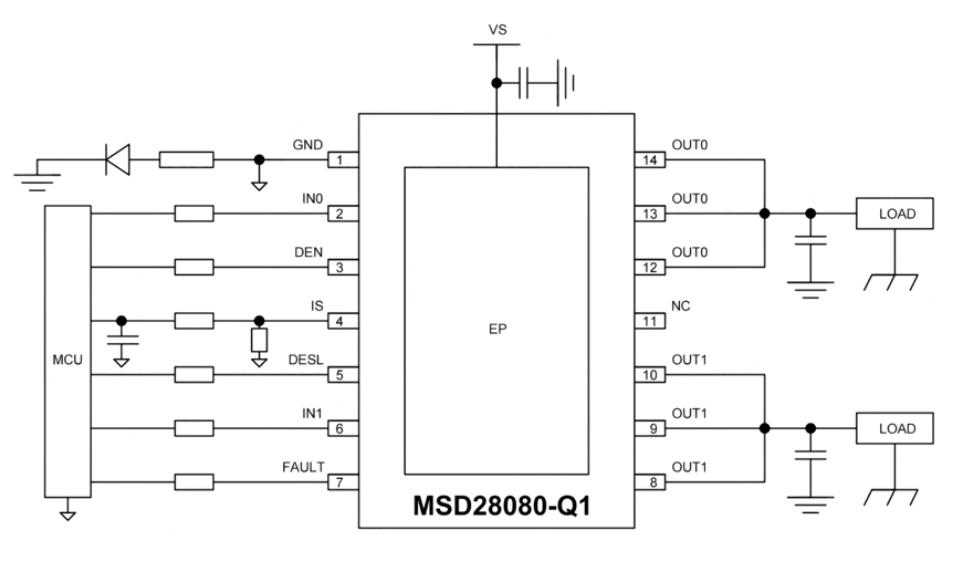 24V系統(tǒng)的雙通道80mΩ級(jí)別智能高邊開關(guān)